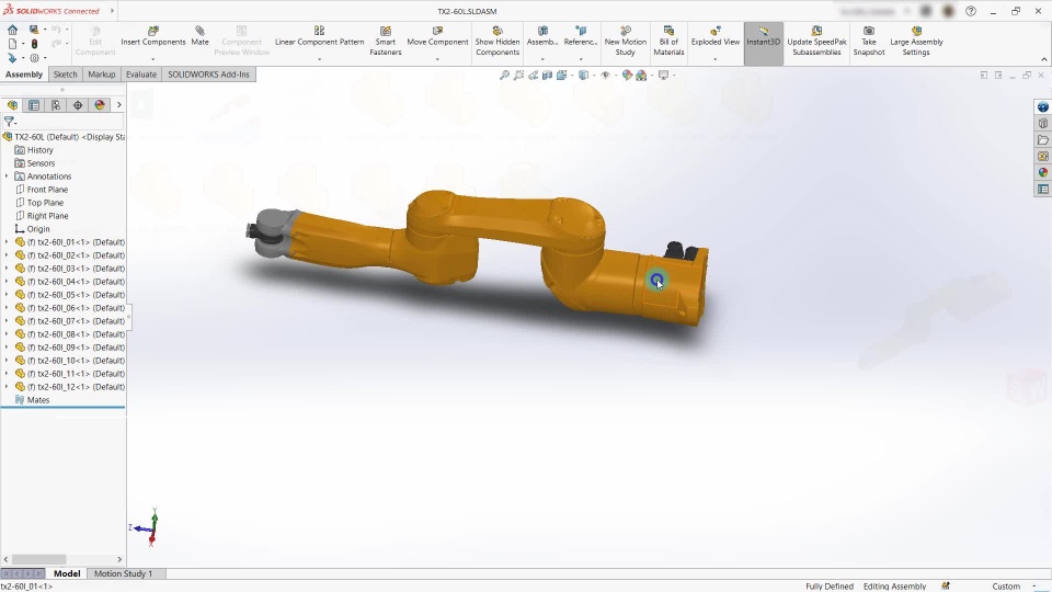 In this particular video I have downloaded the 6-axis Robot assembly and assembled it using SOLIDWORKS Connected. As the end result, I got assembled Robot with all the desired constraints.