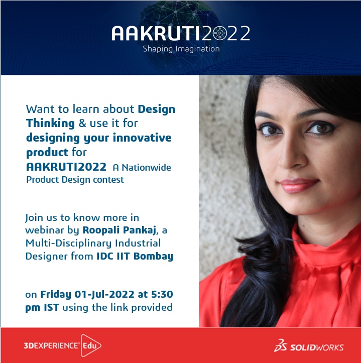 A webinar is organized by AAKRUTI 2022 Organizing Team to introduce you to the concept of Design Thinking in early stages of a solution design.