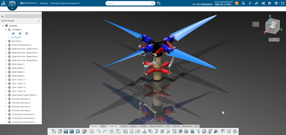 Excited to share my latest project – The assembly of a Helicopter Rotor Mechanism. incorporated a rotation mechanism and blade angle adjustment, pushing the capabilities of cloud-based CAD design even further.