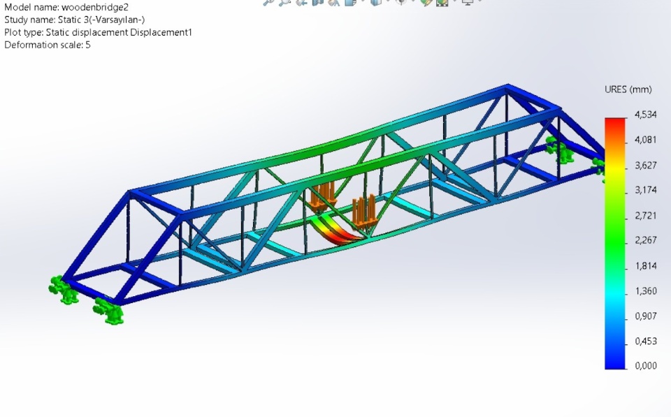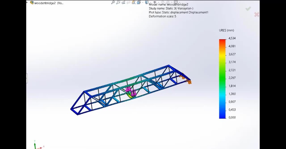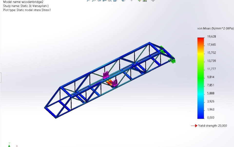 For our statics lesson, we were given the task of making a bridge prototype as a project. Of course, with the happiness of having discovered the platform 10 months ago, I tried to make my design here as soon as possible. I drew my homework first through Solidworks. While making these drawings, we determined the dimensions of each element of the bridge according to the static calculations we made by hand. We made my design on Solidworks and created the technical drawing. My friend produced our bridge by placing the balsa wood sticks on top of the 1:1 technical drawing that we created.. Not only that, I said, "Why shouldn't I analyze the 150 N carry target given for our assignment?" Thanks to the power of the platform and Solidworks, I also analyzed my design. On the day of the presentation, all my classmates and teachers were quite surprised to see that colorful stress analysis on the screen. I've definitely made mistakes, but I think it was a lot of fun content! After my work, many of my friends asked how I made this color chart(!) 😄 I directed them all to the platform, I hope they read this.