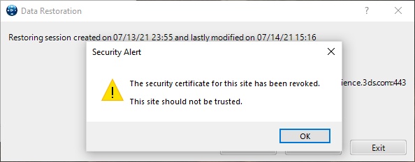 I am frequently having issues launching 3DX part design through chrome. When clicking on part design, it will launch 3DX, then pull up restore the previous session model I created, then it will fail from a security certificate error. What is causing this security certificate error and how do you fix it? Is it java or website configuration related?
