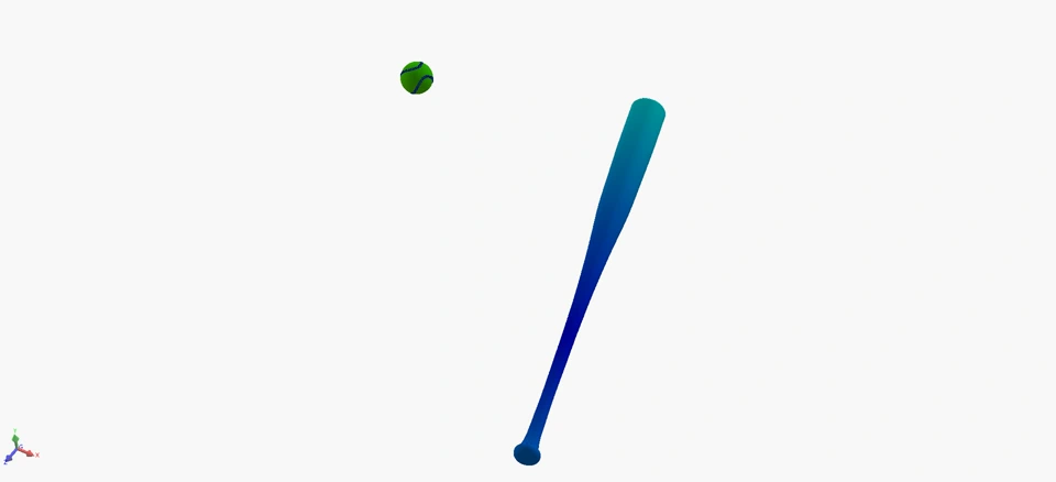 To answer this question, I performed a simulation using SOLIDWORKS Simulation, exploring the behavior of the ball at the moment of impact.