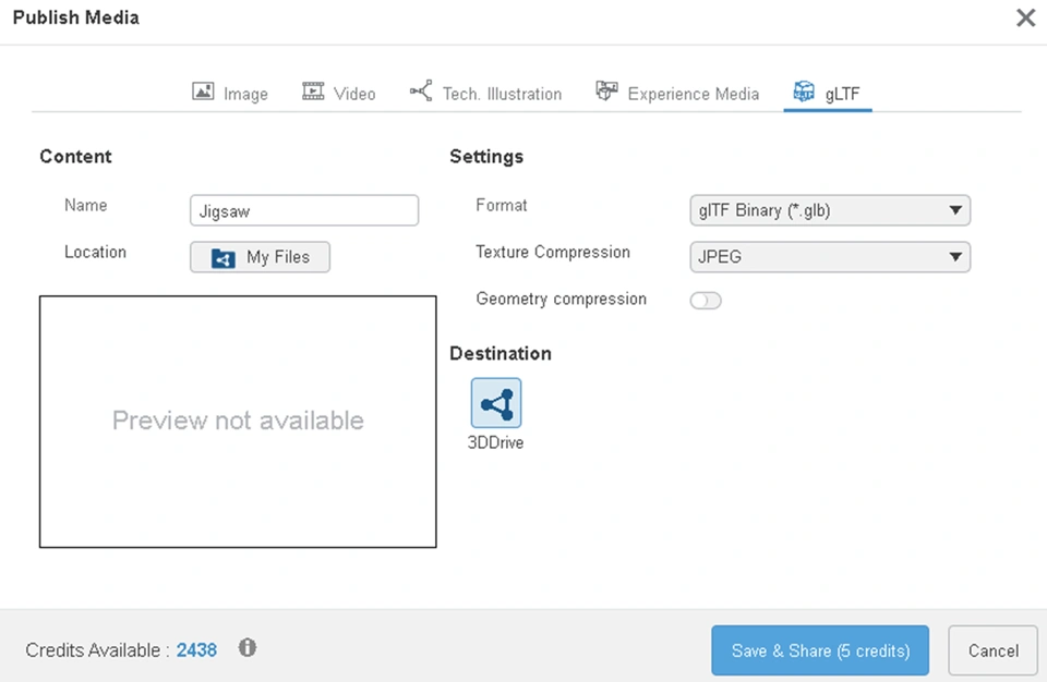 Now let's insert the "3D JPG" (glTF).