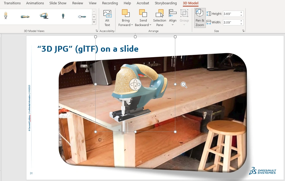 A prior post shared how to insert 3D models into MS Powerpoint.