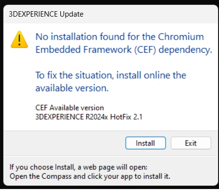When I open 3D Experience, I see this. When I click on install, the loading page does not appear, it sends me to the website. I cannot update, I cannot use the program, I need help.