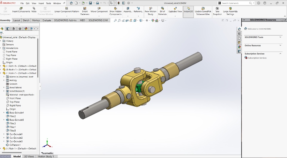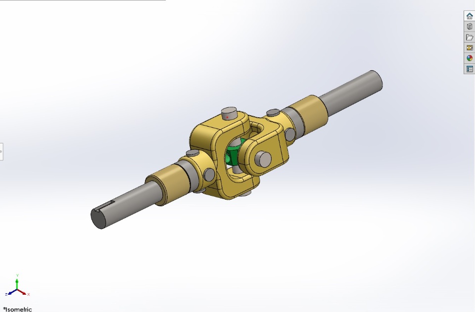Here is my recent work which is design of Universal Joint consist of Fork, Pin, Bolt, Bush, Shaft, Nut. Universal Joints are coupling devices that transmit torque and rotary motion from one shaft to another at fixed or varying angles of intersection. Application of universal joints include aircraft, appliances, control mechanisms, electronics, instrumentation, medical and optical devices, ordnance, radio, sewing machines, textile machinery, and tool drives. Universal joints are available in steel or in thermoplastic body members.