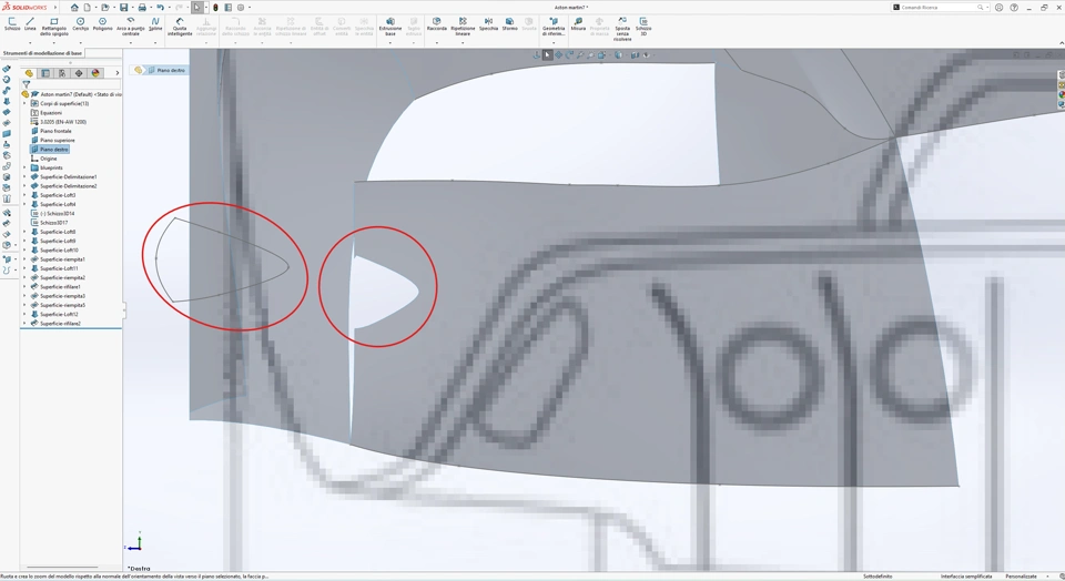 The screenshot shows an error with the surface trimming tool. It seems that the cut on the surface doesn't exactly match the trimming tool.