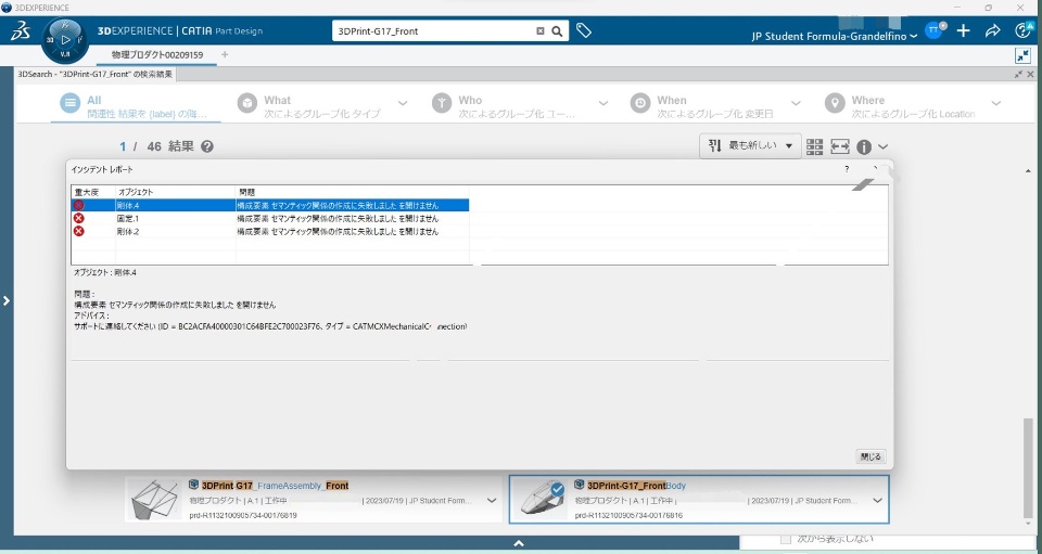 The error message ""failed to create semantic relation" (translated from Japanese) was displayed.