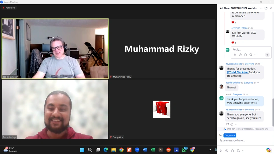 Actively participating in SWUG meetings, starting from the meetup platform to the Bevy platform. By attending various SWUG meetings, I have gained new insights, new knowledge, new connections, and the opportunity to get free certification opportunities from attending. SWUG really helped me in adding to my knowledge about SOLIDWORKS and gave me a great opportunity to get free certification🤩 ☺️ . Thank you SWUG🥹