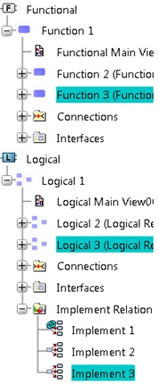In the tree, if the corresponding options are selected, the implement relations are stored in these folders: