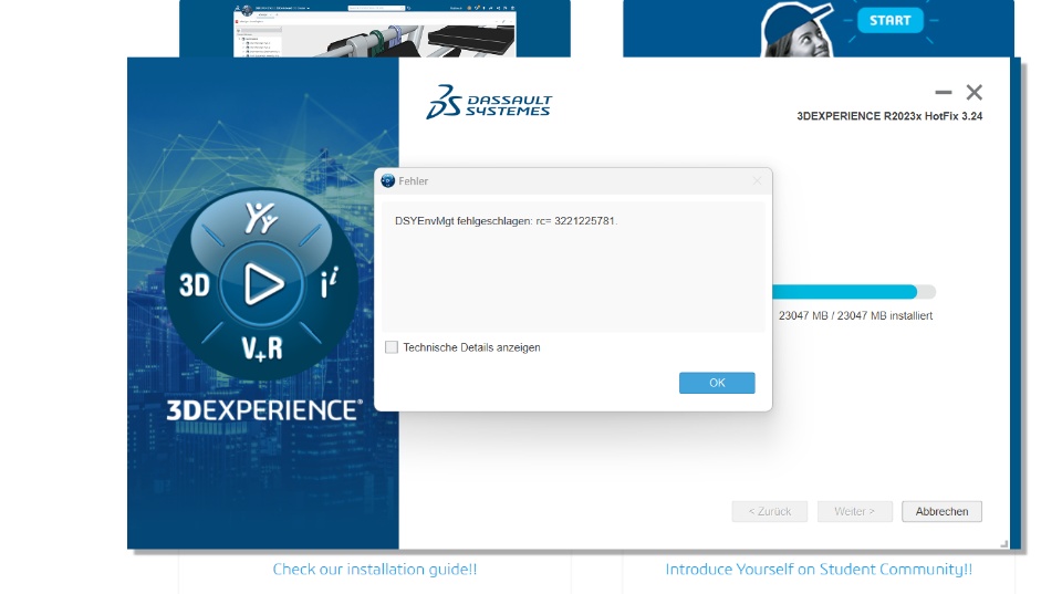 hi, i would like to install part design and i can´t install it. it comes error messages. i´ve pictures of the error messages which are in german.
