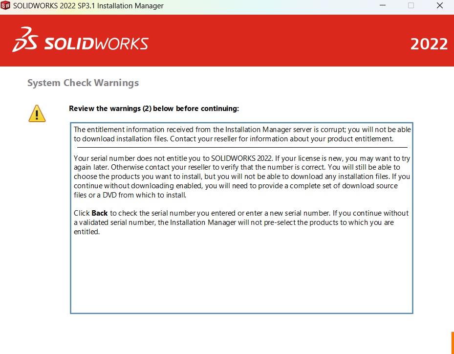 I tried ussing another pc to install SW but I got the same problem.
