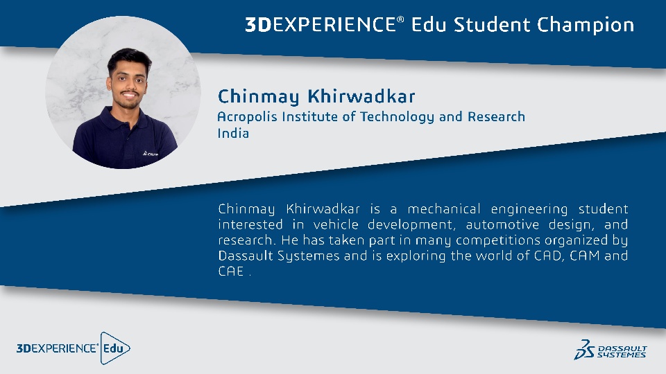 We have new 3DEXPERIENCE EDU Student Champions, and let me introduce you to them over the coming days, one by one.