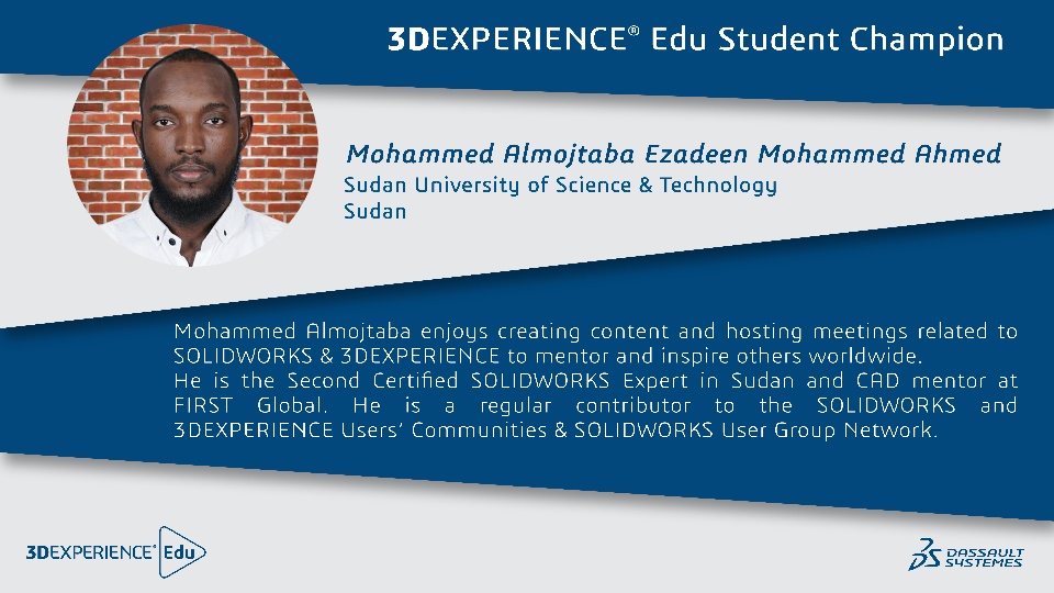 We have new 3DEXPERIENCE EDU Student Champions, and let me introduce you to them over the coming days, one by one.