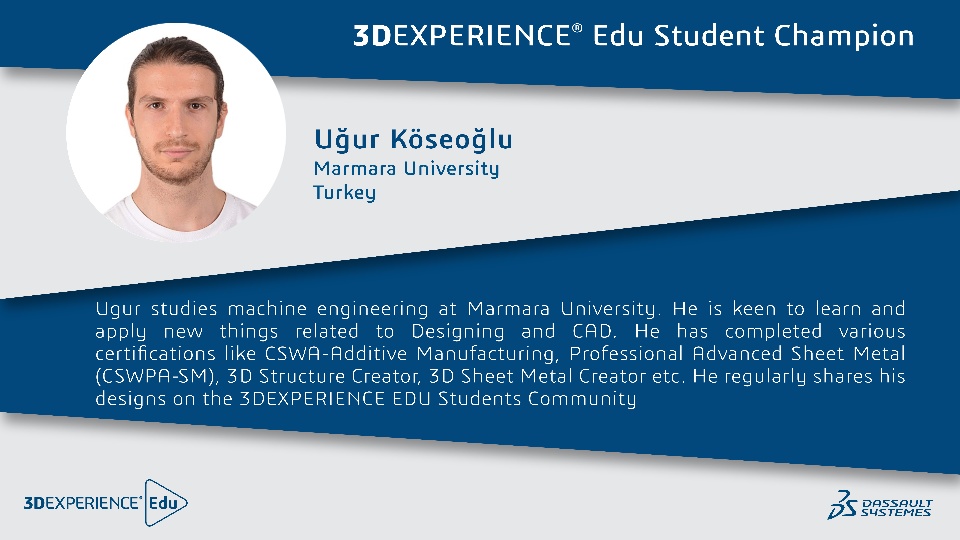 We have new 3DEXPERIENCE EDU Student Champions, and let me introduce you to them over the coming days, one by one.