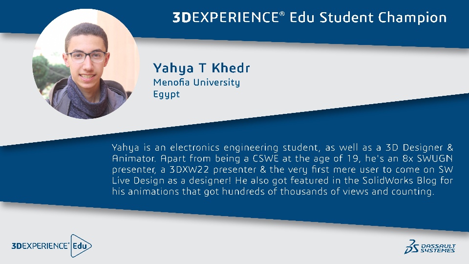 We have new 3DEXPERIENCE EDU Student Champions, and let me introduce you to them over the coming days, one by one.