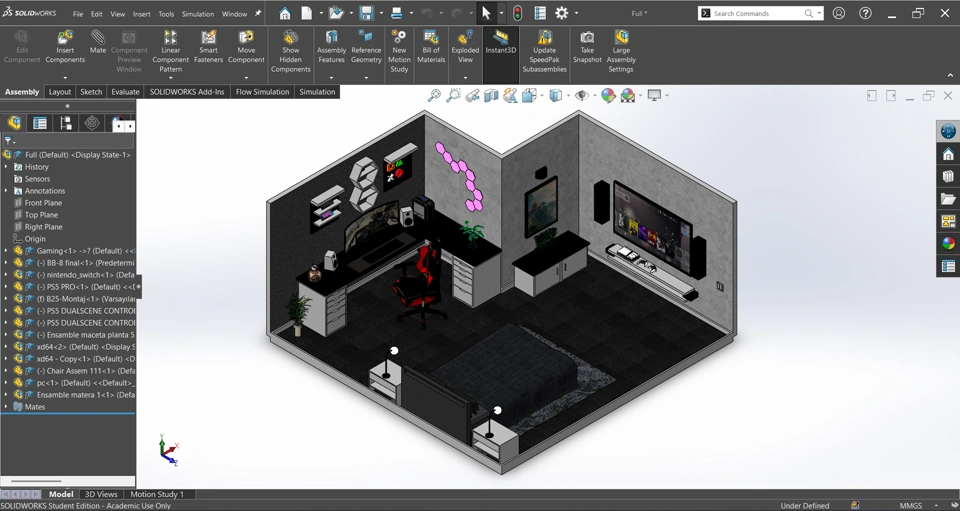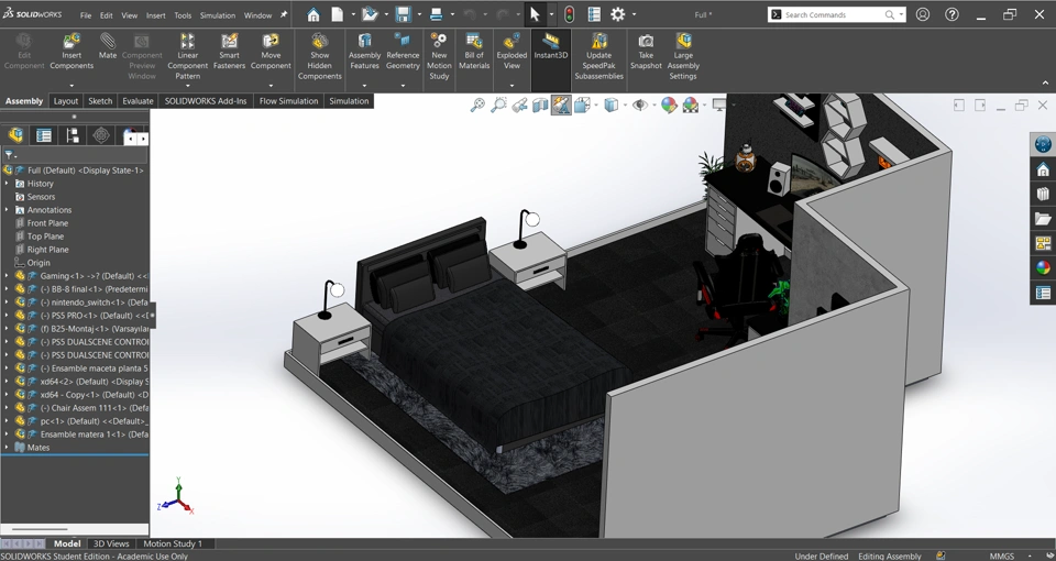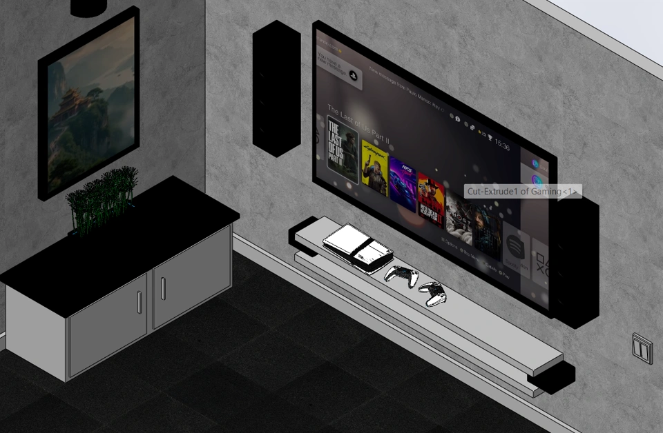 Designing this space in SOLIDWORKS was an amazing way to push creativity, showing how CAD isn’t limited to mechanical parts, but can also shape interior concepts and lifestyle designs.