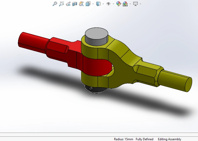 3D design for a knuckle joint , It is used to connect two rods under tensile or compressive loads, allowing slight angular movement. It is widely used in mechanical linkages, and trains .