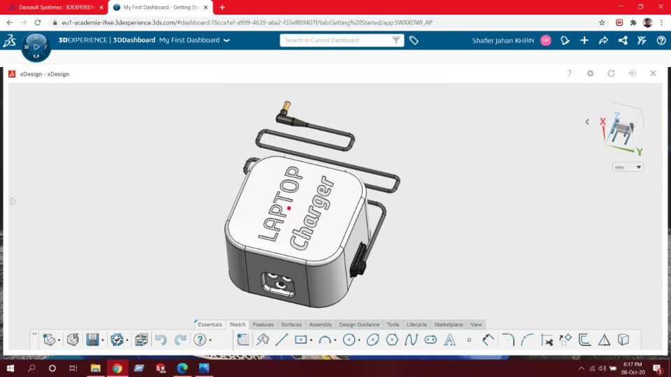 Laptop Charger concept design in 3D Experience platform. xDesign helps. Very soon 3D experience will be the future. I love this platform.
