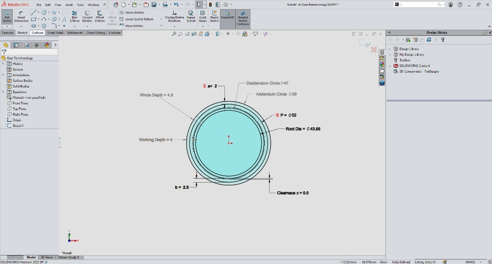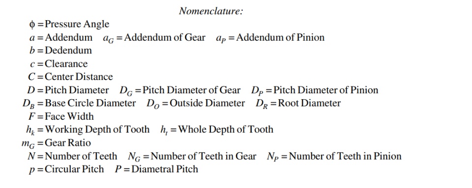while designing an spur gear I have learned most of term specification , Terminology and formula for equation