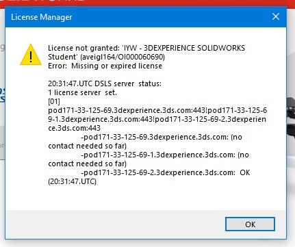 I renewed my subscription to SolidWorks Cloud Apps for Students on 28June, received an order confirmation, and the start using your roles and applications email. But have been receiving a, "license not granted" error when I try to load SolidWorks. I have tried uninstalling all programs and reinstalling, restarting my PC, and restarting my queue, but always get the same error. Any help would be greatly appreciated!