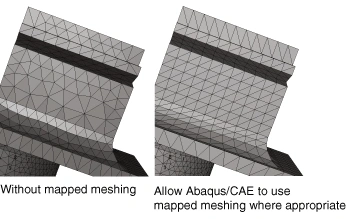 Some seemingly complex models might have simple flat surfaces. When you use free meshing or swept meshing on these areas, the resulting mesh elements might not be ideal. However, ABAQUS/CAE can intuitively use a different method called mapped meshing on suitable faces. This mapped meshing often creates high-quality elements, especially for long, thin, rectangular surfaces.