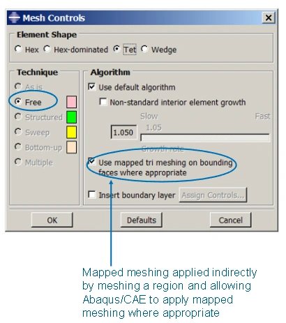 While you can't directly tell ABAQUS/CAE to use mapped meshing for a specific region, you can achieve this by simply meshing the region and letting the software decide. Abaqus/CAE will then automatically use mapped meshing for appropriate faces within that region.