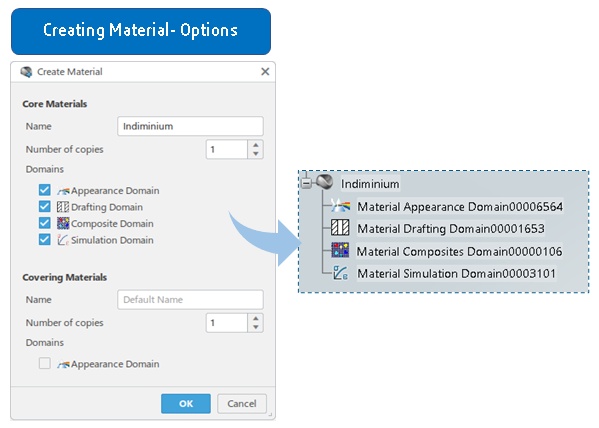 Each material can have one or more Material Domains- Appearance, Drafting, Composite, Simulation.