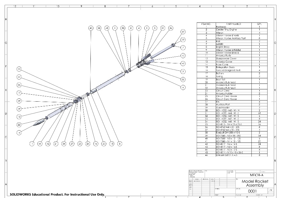 This post will contain Model Rocket Design / Visualization / Technical Drawings / Composite Materials Properties / Nose Cone Types / Explode Animation / CAD Files