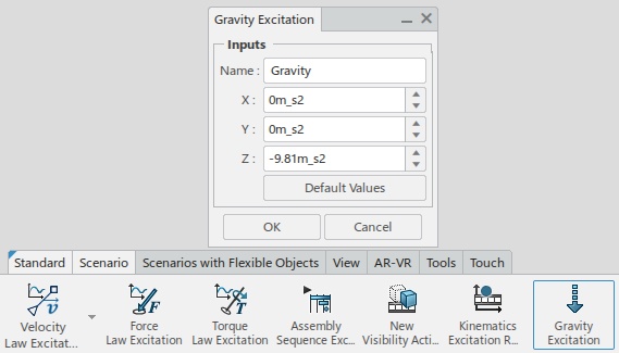 You can edit the gravity force applied to a mechanism and accounted for when playing the mechanism.