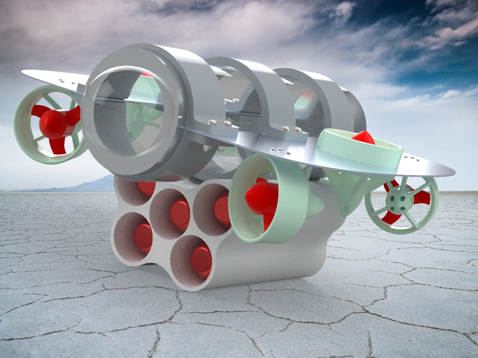 Model 2 is an improved version of the previous prototype, designed with optimized motor placements and a lower center of gravity for enhanced stability. The body is constructed using AL 6061 T6 aluminum alloy plates and an acrylic main tube. The modular structure is supported by 3D-printed clamps.
