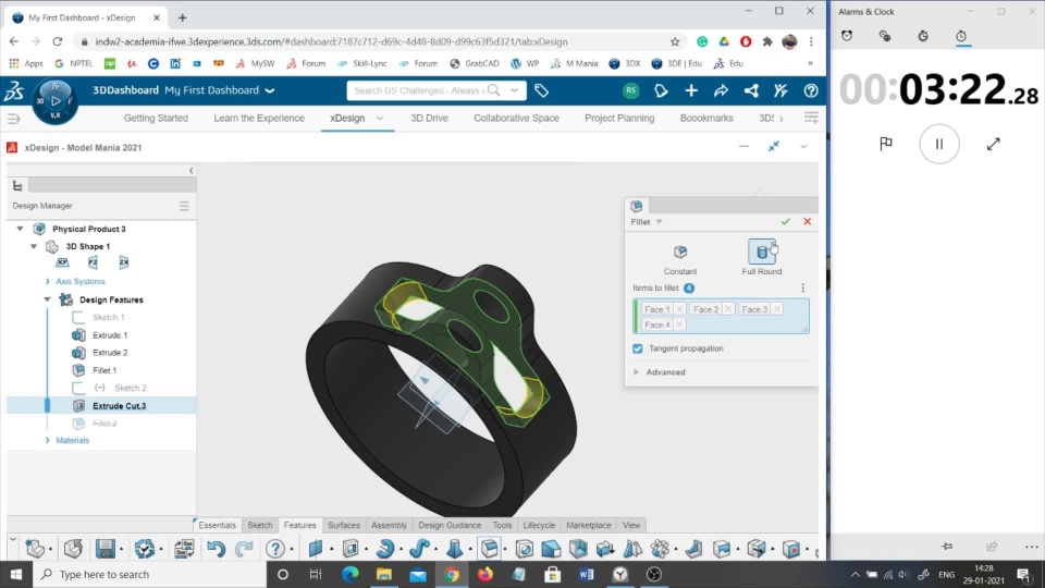 It took me 5 minutes and 50 seconds to finish both phases in total starting from the opening of cloud based xDesign app till the finish. At times, the processing took time due to the internet strength issue. The time taken can be reduced if cloud computing is replaced by edge computing or it is done in Desktop SOLIDWORKS software.