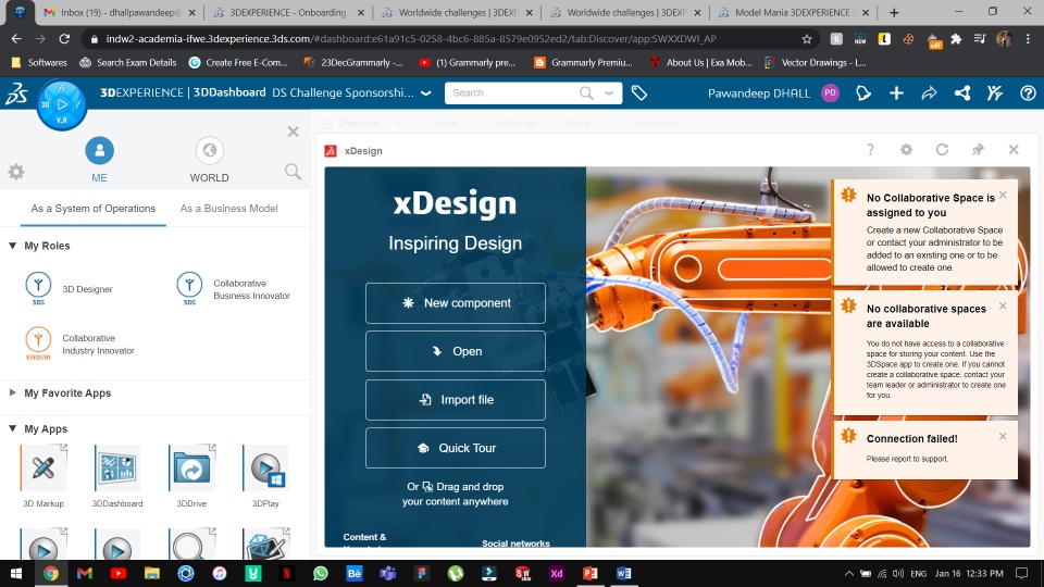 X design doesn't open as it says no collaborative space available and connection unsuccesful.