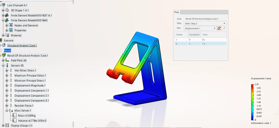 Abstract- I have designed the existing one which had given in the problem statement where we acquired the 0.309kg, after i modified the design and simulated it again then achieved mass is 0.069kg , after using PDS The mass is becoming 0.066 kg .