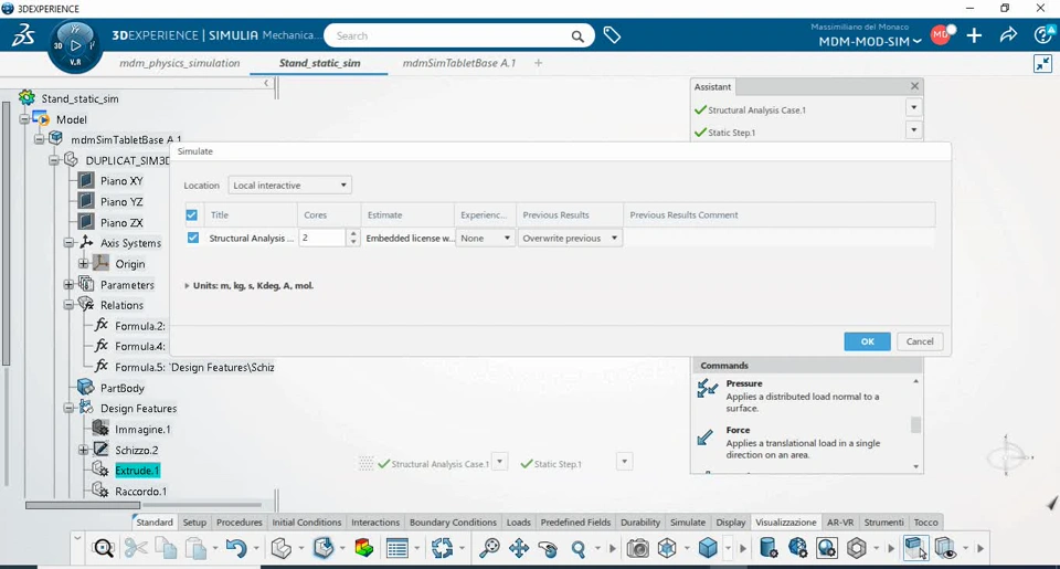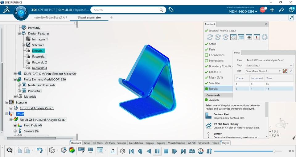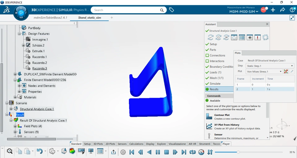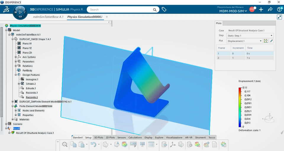 This study focuses on the design and structural optimization of a tablet desk stand. The primary objective was to create an ergonomic and structurally robust support for tablets, utilizing parametric design and finite element analysis (FEA) to enhance performance and material efficiency. In the phase of modeling it is paramount to eliminate every part that is not so important. In this case I cannot make better of. As sum up the whole experiment of simulation was good even though I have had so many issues! I am a computer scientist aimed at using this software product for R&D (research and development) without skills and capabilities about Mechanics over a normal courses attended during my academic studies. I would like to insert here another analysis made with Mathematica where I have highlighted some mathematical aspects. I hope to add them in a post or attachment as soon as possible!