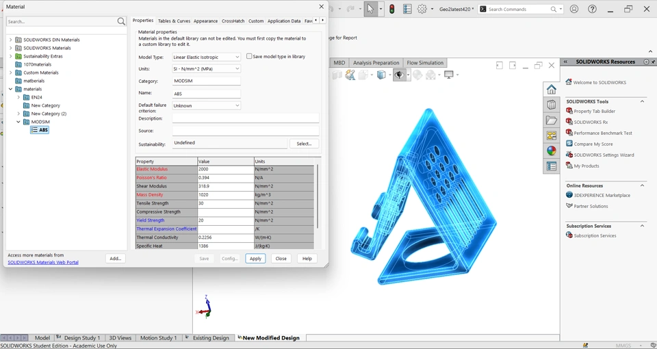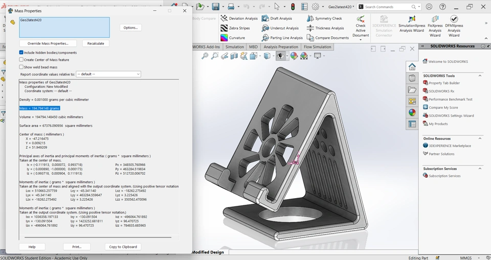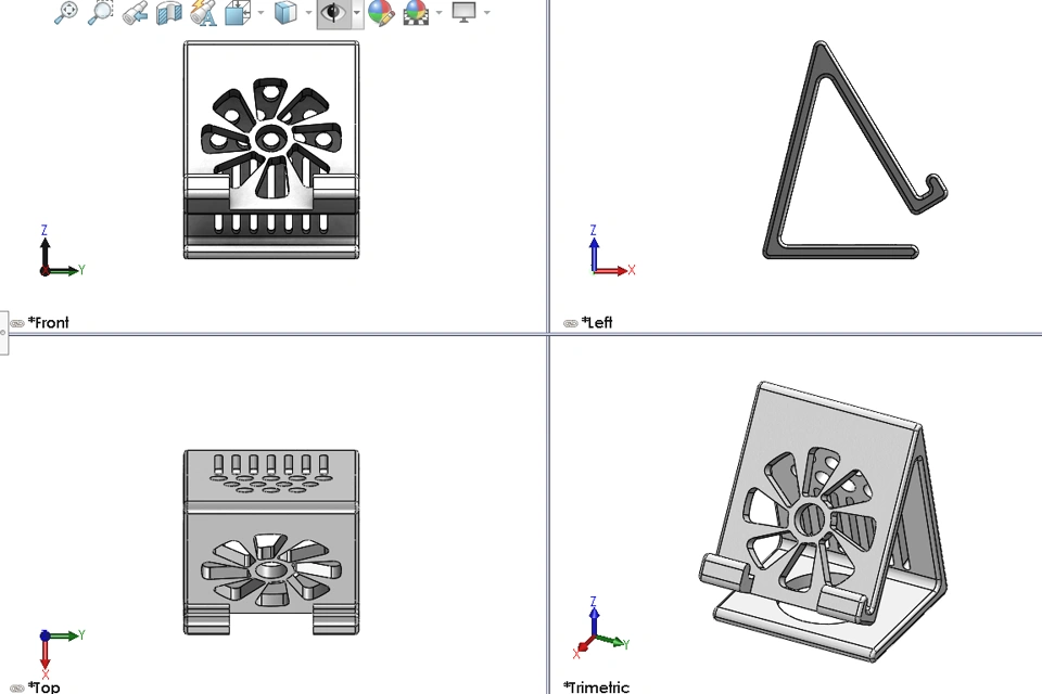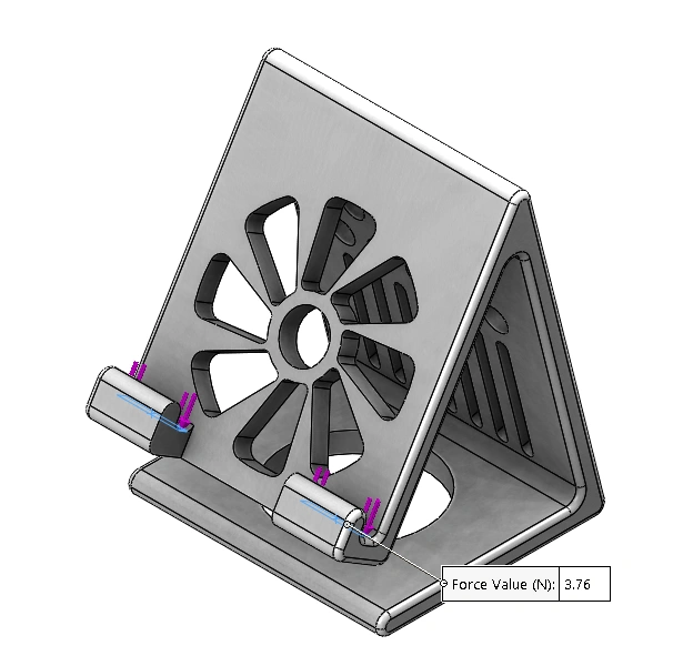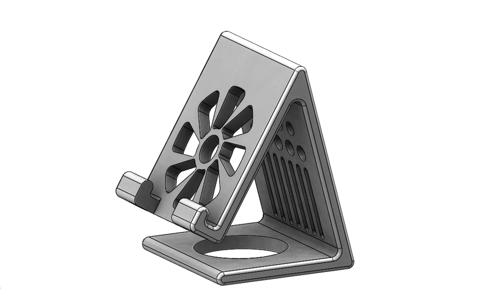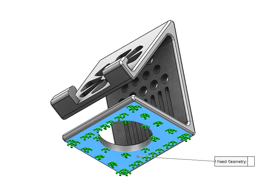 A parametric CAD model of Tablet Desk Stand is optimized through iterative FEA, ensuring structural integrity, material efficiency, and stress compliance. Key features include enhanced stability, improved heat dissipation via perforations for natural convection cooling for tablet, ergonomic Vision angles, and a simple, manufacturable design. Also the whole design is obtain by varying the upper and lower limit of 10% of original value of length and ±5 degrees for angle of the existing design.