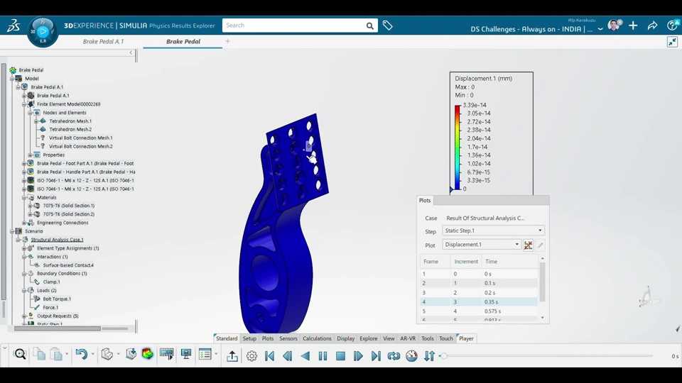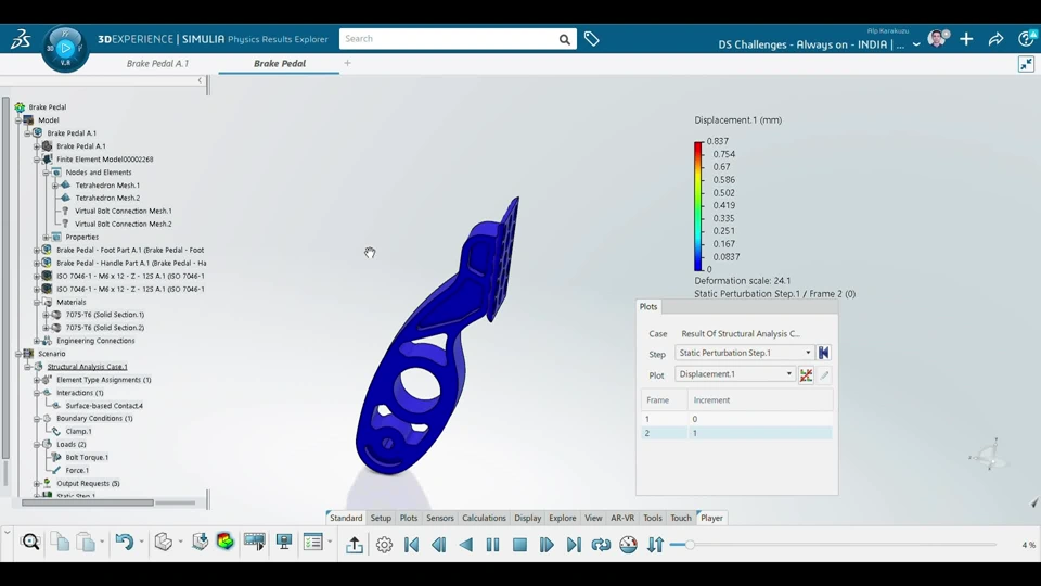 Brake pedal is optimized according to the reference dimensions