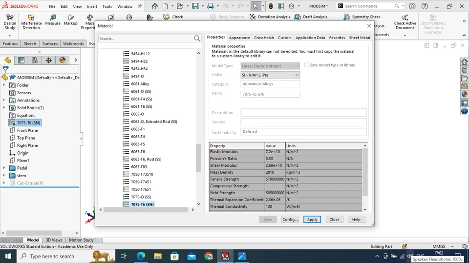 | Yield Stress limit | 5.05e8 N/m^2 |
