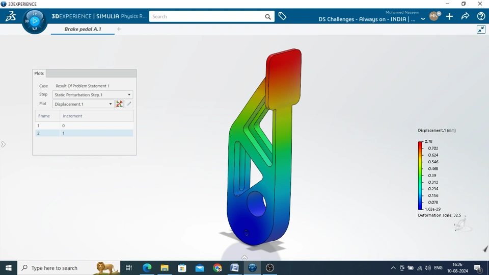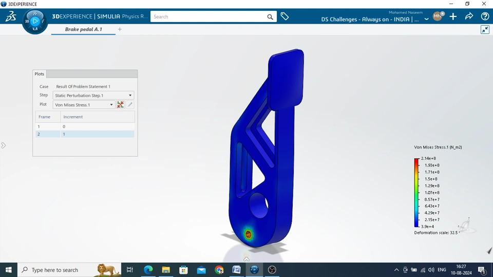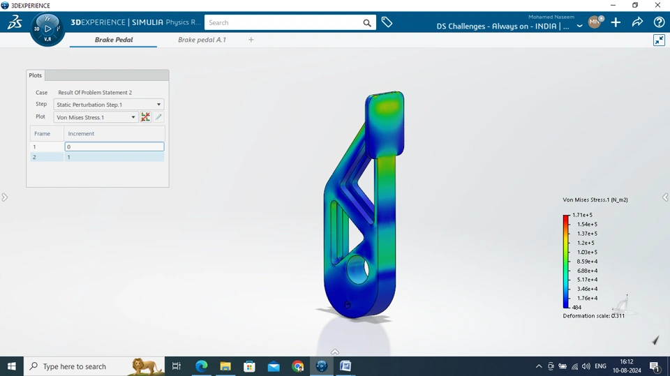 - The dimensional constrains can be verified from the "Proof video" in which dimensions of the part are shown in xDrawing. The results including stress, displacement, materials used, and mass of the brake pedal can be verified from the generated pdf reports which is also recorded in the video". Proof Video link