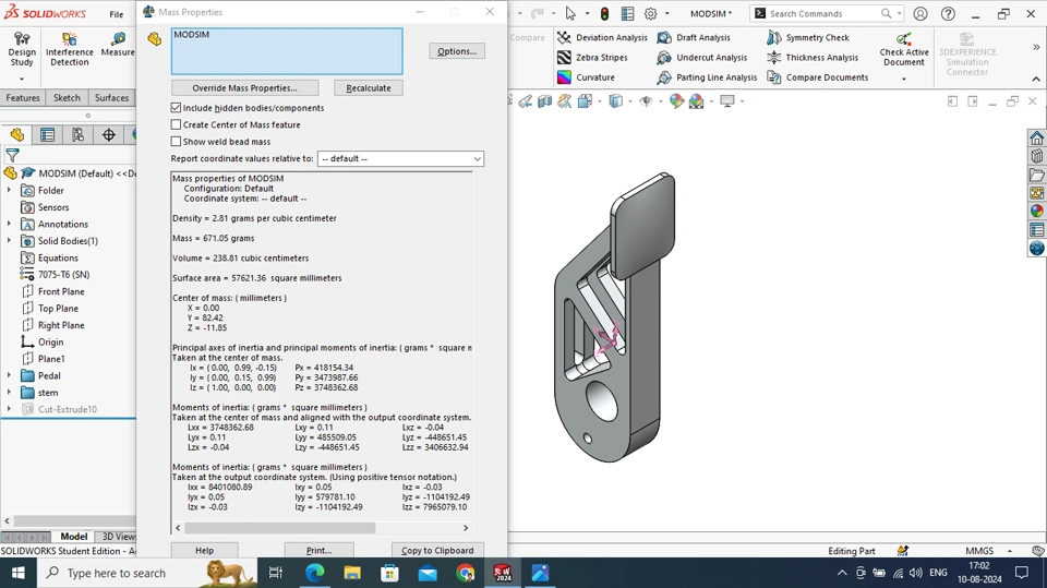 | Mass of the part | 671.05 grams |