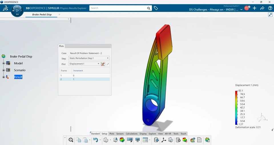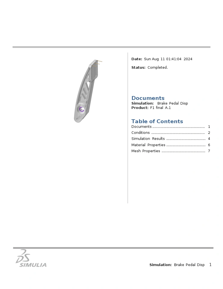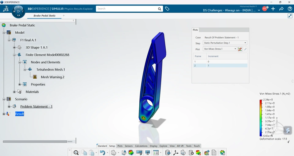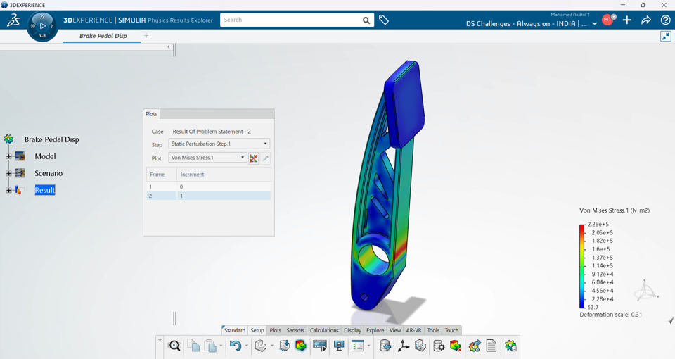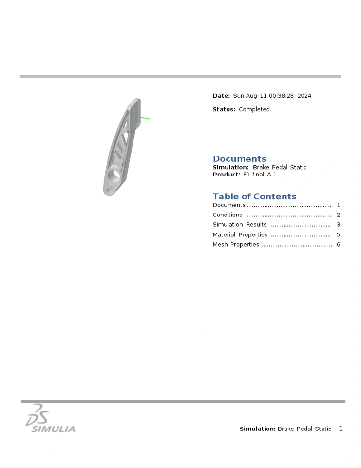 The brake pedal has been constructed according to given conditions and optimized for the problem statements to reduce material and increase stiffness.