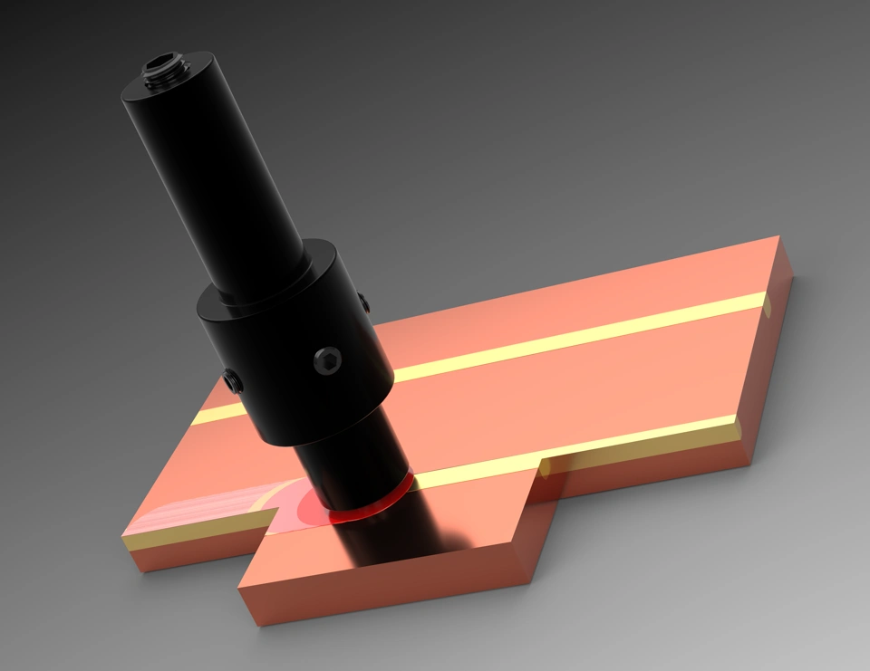 This design offers a modular system as an alternative to traditional one-piece friction stir welding tools. The tool consists of a detachable pin and body, allowing quick replacement of the pin for different welding applications. The body is secured to the welding device using four side screws, while the pin can be easily swapped out for another with desired specifications. This design enhances operational flexibility and ensures high efficiency when welding various materials.