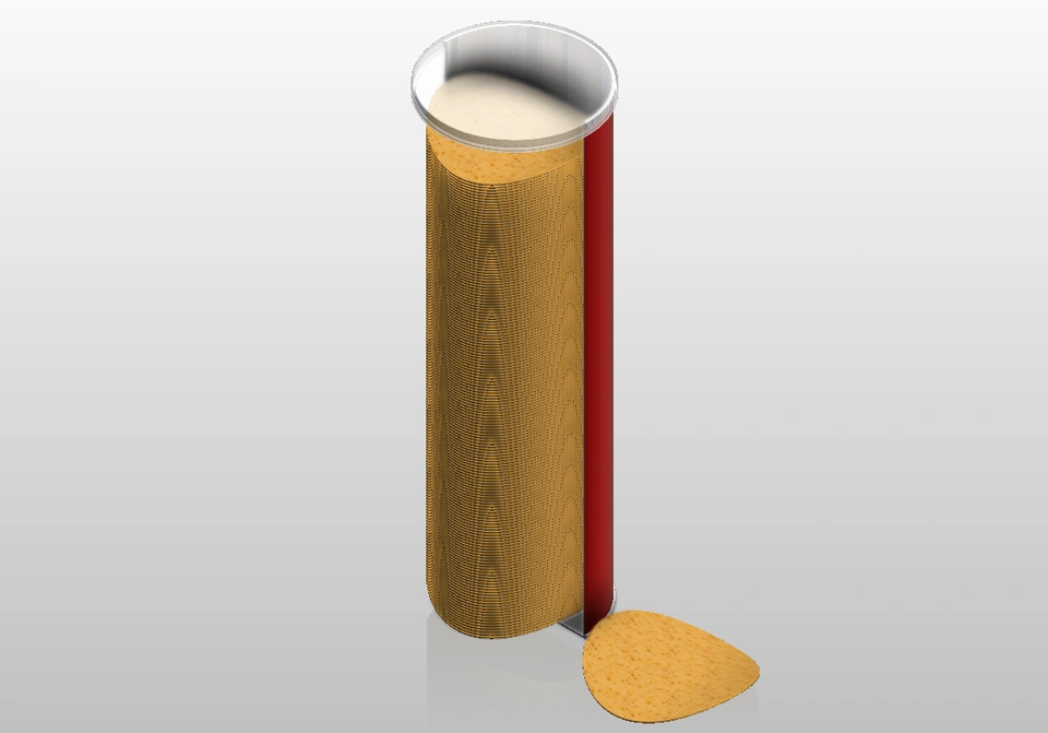 In this design, I focused on replicating the snack’s signature hyperbolic paraboloid (saddle-shaped) geometry: an incredibly efficient form that distributes stress evenly, reducing breakage during stacking and transport.