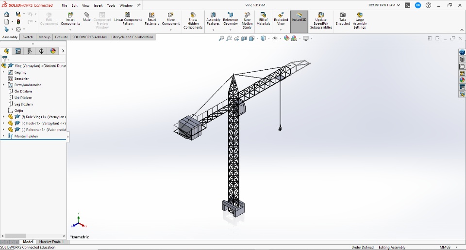I wanted to make a design using different commands in SolidWorks Connected and I came up with the tower crane design. .