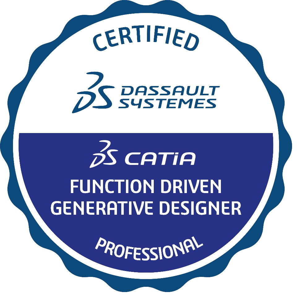 This certification assesses knowledge and skills with augmented designing and additive manufacturing techniques after initial training and a minimum of six months of regular practice using CATIA Function Driven Generative Designer.