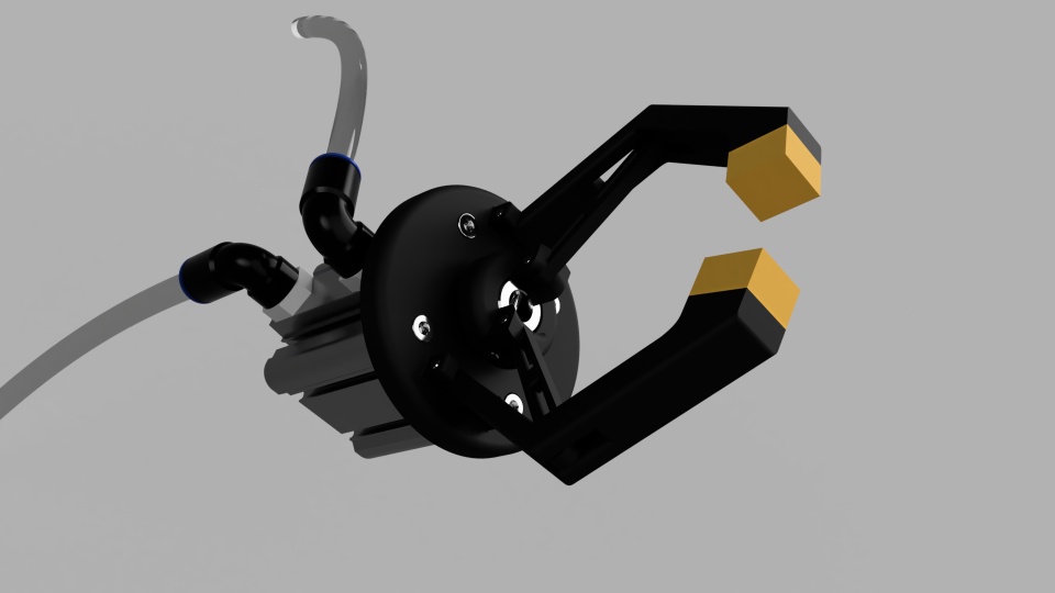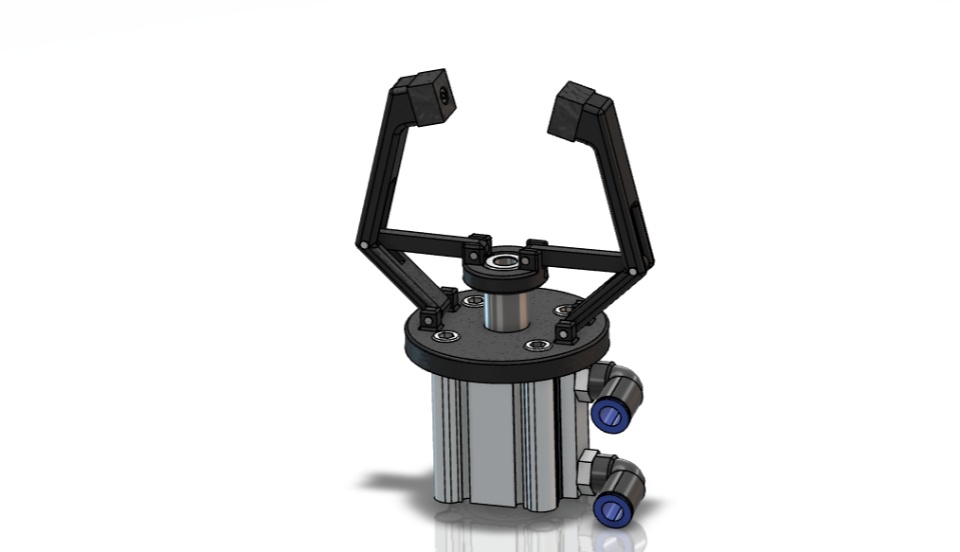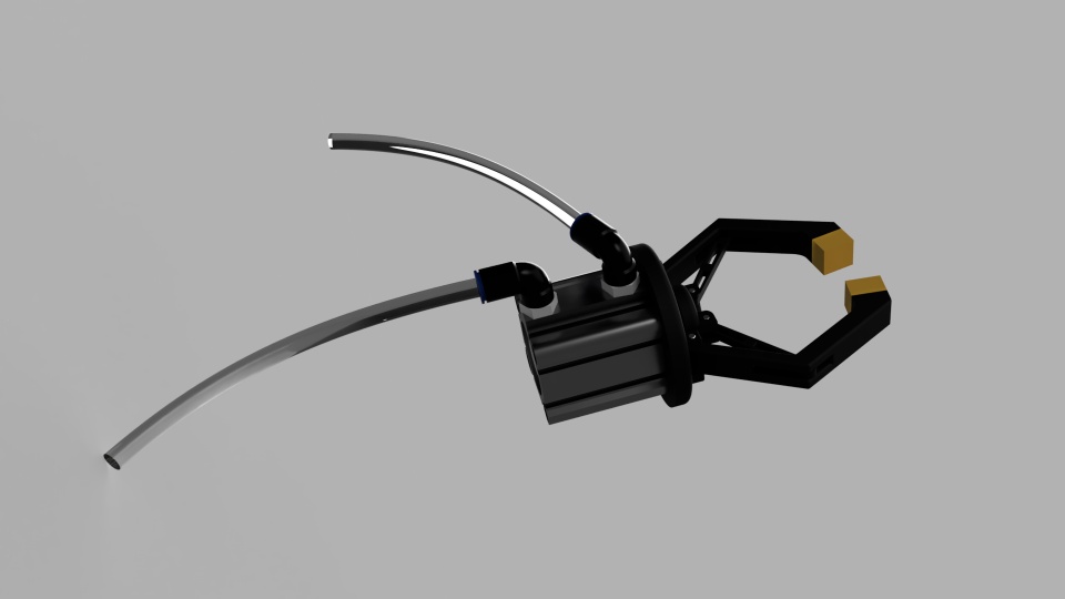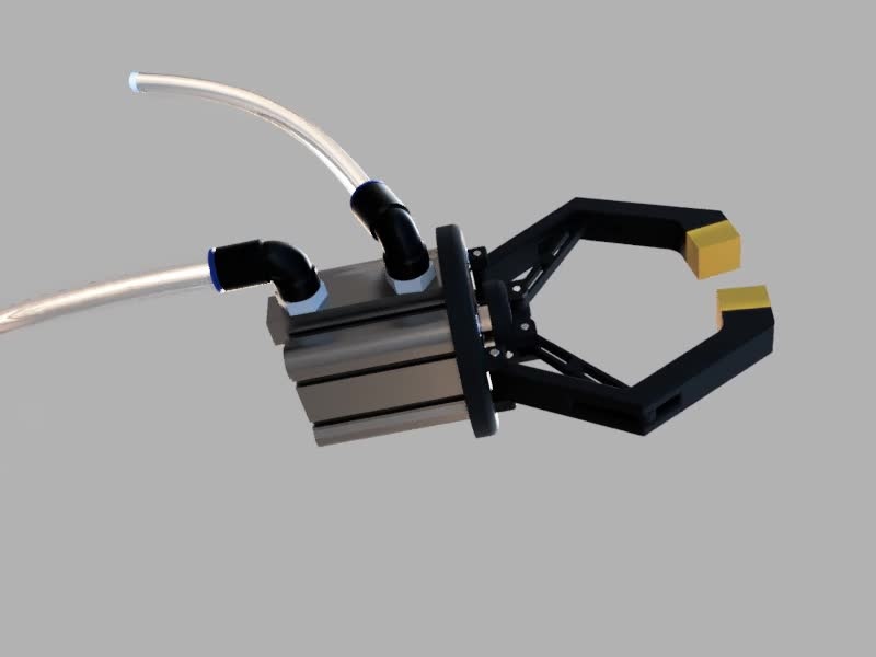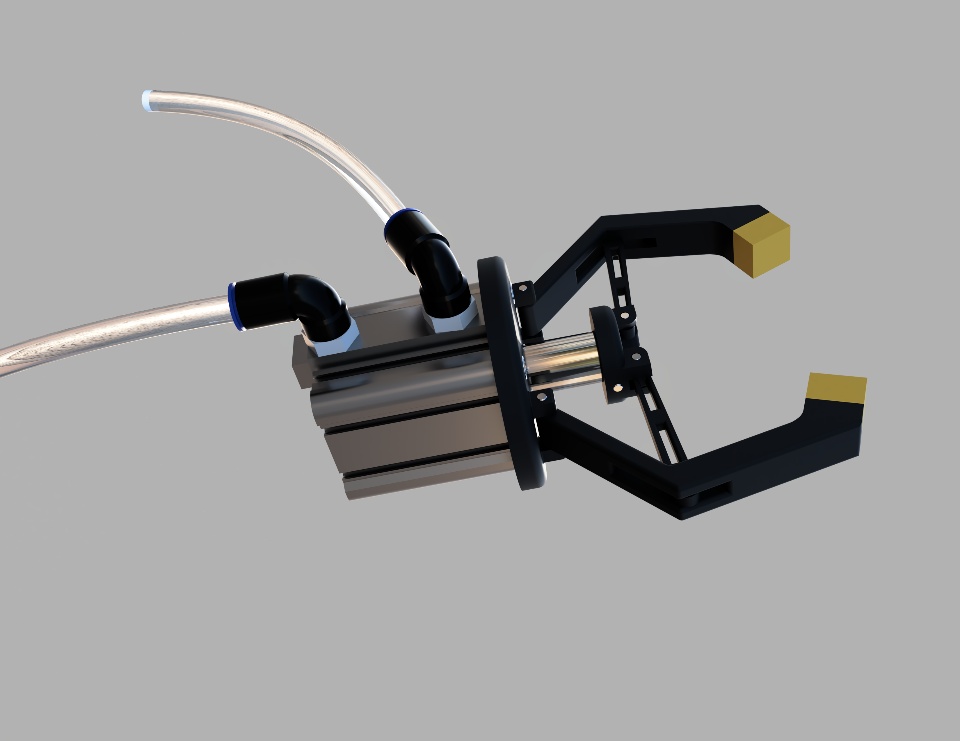 I wanted to design a gripper that works with a pneumatic piston. I did all the design with xDesign, downloaded the necessary parts from the manufacturer's page and imported them into xDesign.