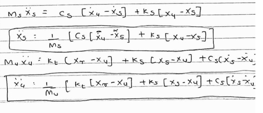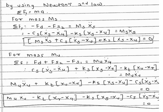 . By using Newton’s Second Law of Motion all forces are equated and two separate equations are formed for sprung and unsprung mass.