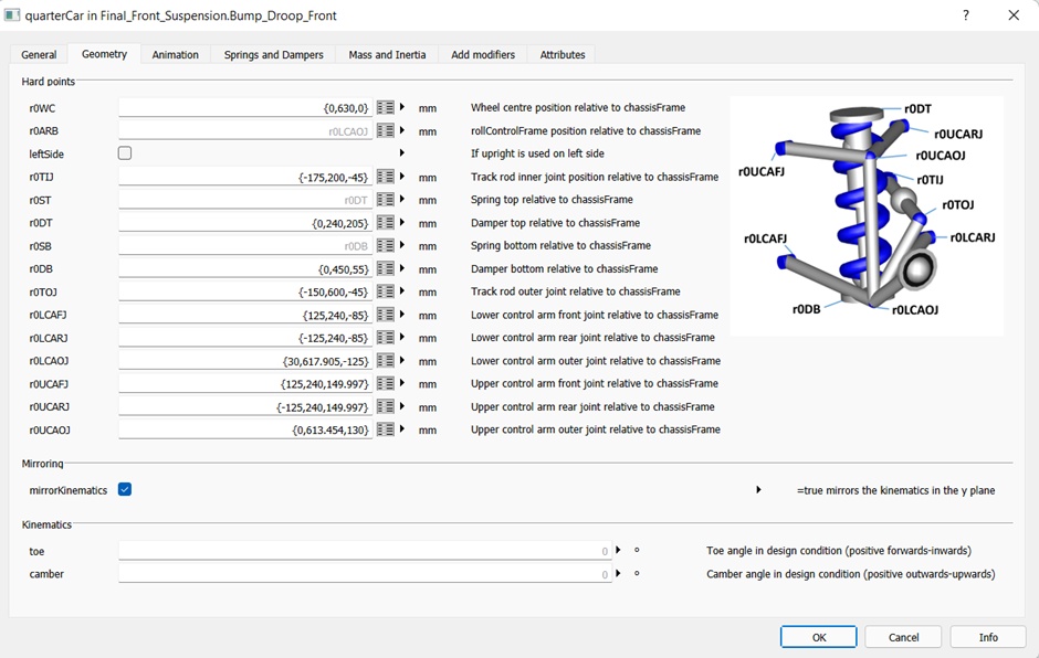 Figure 1 Front Double Wishbone Kinematics Template
