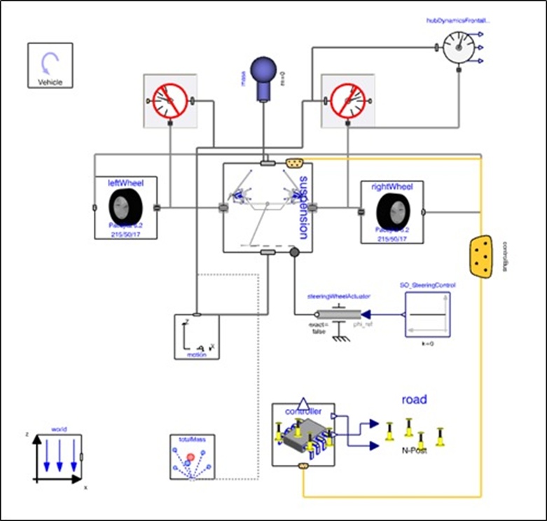 For this, VeSyMa suspension library from CATIA DBM is used for carrying out the iterations. A template named “Front MacPherson Half Car Roll” from VeSyMa Suspension library is used for iterating geometry. In this template, the “MacPherson Suspension” block is replaced by “Double Wishbone” block using change class command available in the CATIA DBM.