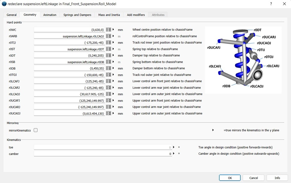 Figure 1 Front MacPherson half car roll template